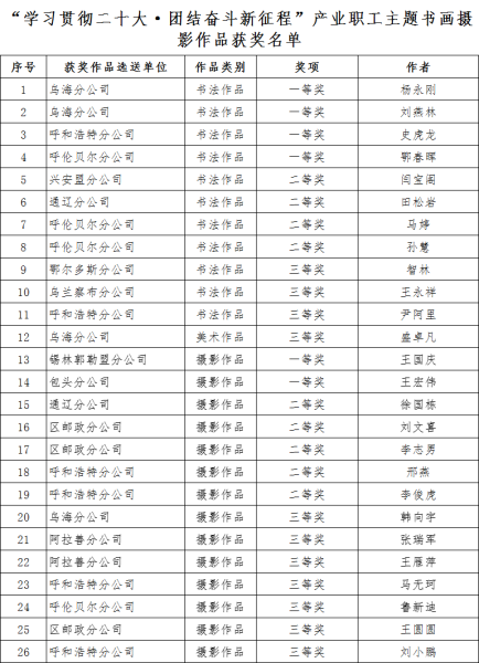 5月25日,由內(nèi)蒙古自治區(qū)國(guó)防郵電工會(huì)主辦,內(nèi)蒙古郵政工會(huì)承辦的“學(xué)習(xí)貫徹二十大·團(tuán)結(jié)奮斗新征程”產(chǎn)業(yè)職工主題書畫攝影作品展活動(dòng)落下帷幕,內(nèi)蒙古郵政職工在大賽中再獲佳績(jī)。