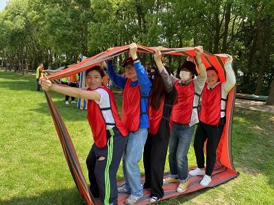 此次活動以亞運(yùn)為主題,以團(tuán)隊(duì)賽的形式開展。同心共圓及拆屋獵人火速燃起現(xiàn)場的氛圍。在卡牌沖關(guān)活動中,各團(tuán)隊(duì)群策群力、斗智斗勇,商討方案后緊密配合,迅速突破闖關(guān)。無敵風(fēng)火輪比賽中,隊(duì)員們“左右、左右”的口號在場地上此起彼伏,邁著整齊的步伐向目標(biāo)前進(jìn)。大家嘗試了皮劃艇運(yùn)動,將自己融于自然,既提升了體能,又鍛煉了意志。