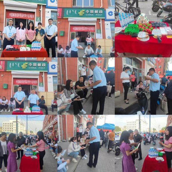 志愿者們?cè)谥挤?wù)點(diǎn)擺好桌子,拉起祝福條幅,為考生和家長免費(fèi)提供礦泉水、扇子、紙巾、文具等物品,用細(xì)致、溫暖的為考生加油、助力。在送上愛心的同時(shí),大家還主動(dòng)與現(xiàn)場等候的家長聊天交流,為家長發(fā)放郵政宣傳折頁,普及金融知識(shí),開展金融詐騙防范、微金融各項(xiàng)權(quán)益活動(dòng)及高考后期的相關(guān)防騙常識(shí)宣傳,全面增強(qiáng)廣大考生和家長的風(fēng)險(xiǎn)識(shí)別能力和自我保護(hù)意識(shí)。