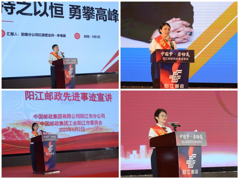 為全面貫徹黨的二十大精神,充分發(fā)揮先進典型示范帶動作用,講好郵政故事,引導(dǎo)廣大干部員工學(xué)習(xí)身邊榜樣,營造爭當先進的良好氛圍,匯聚起攻堅克難、拼搏奉獻、再創(chuàng)輝煌的強大正能量,6月2日,結(jié)合陽江市分公司金融跨賽表彰大會,陽江市分公司、陽江郵政工會聯(lián)合舉辦“中國夢·勞動美,凝心鑄魂跟黨走 團結(jié)奮斗新征程”先進事跡宣講活動。