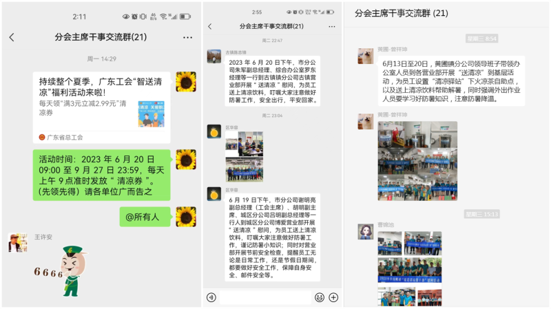 此外,在省總工會(huì)“智送清涼”活動(dòng)啟動(dòng)前,中山市郵政工會(huì)已通過微信群、工作群積極宣傳發(fā)動(dòng),做好鋪墊工作,讓廣大員工在炎炎夏日享受更多省總清涼福利。