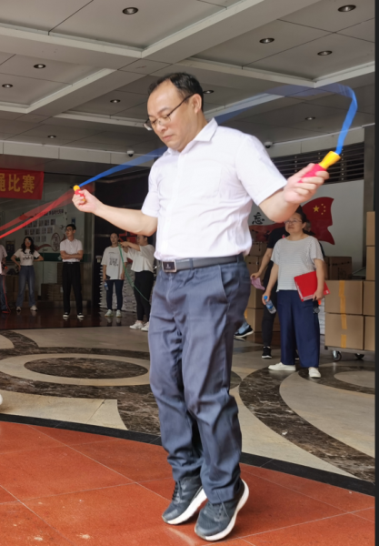 比賽現(xiàn)場(chǎng)熱鬧非凡、精彩紛呈,叫好聲、助威聲此起彼伏。員工們熱情高漲,全情投入,紛紛使出“看家本領(lǐng)”,訓(xùn)練有素的員工可謂身輕如燕,只見(jiàn)跳繩在手中上下翻飛,劃出一道道炫目的弧線,耳邊傳來(lái)的是跳繩劃過(guò)空氣發(fā)出“簌簌簌”的聲音;平時(shí)缺乏訓(xùn)練的員工跳得比較費(fèi)力,跳繩還常常絆住腿腳,但他們不氣餒、不放棄,中斷了馬上重來(lái),一直堅(jiān)持到底。集體項(xiàng)目是“8字跳繩”,選手們隨著搖繩的節(jié)奏魚貫而過(guò),不但眼疾腿快,還默契十足,比賽過(guò)程精彩而激烈,熱鬧的場(chǎng)面令人目不暇接,助威聲歡笑聲不斷。