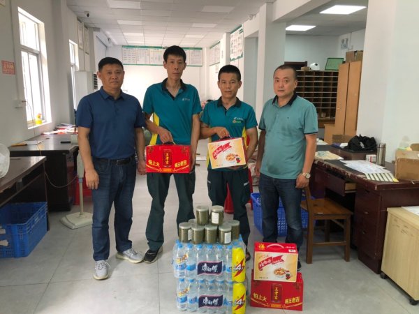近日,持續(xù)出現(xiàn)高溫天氣。為做好防暑降溫工作,保障高溫天氣下員工的健康權(quán)益,7月6日起,池州市分公司領(lǐng)導(dǎo)班子分別攜相關(guān)部門負(fù)責(zé)人一行冒著酷暑,先后去往各區(qū)縣公司,深入到郵件處理中心、攬投部、支局所親切慰問一線職工,為大家送上礦泉水、王老吉、綠豆、西瓜等防暑降溫食品,把公司黨委的殷切關(guān)懷和工會(huì)組織的親切慰問送到了大家的心坎上,令置身酷暑中的員工們感受到一縷縷別樣的舒心清涼。