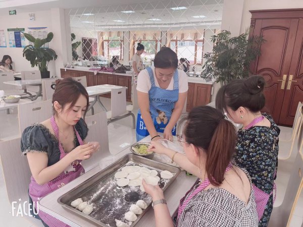 活動現(xiàn)場,大家一起動手,分工協(xié)作,熱鬧非凡,有的負責和餡兒、有的負責和面、有的搟皮兒、有的包餃子,大家相互學習花樣包餃子技藝,歡聲笑語,其樂融融。歡聲笑語間,一個個精致的餃子脫手而出。后廚早已把鍋里的水燒開,餃子煮進鍋里,打著旋、翻轉(zhuǎn)著,不一會兒,冒著熱氣、飄著香氣的餃子被撈進盤中、盛在碗中。現(xiàn)場氣氛融洽,大家一起度過了一個愉快的上午。