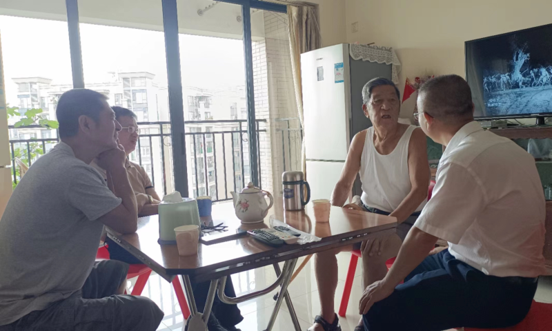 見到慰問組一行人,孫老佩戴好助聽器,傾聽信源集團(tuán)副總經(jīng)理、工會(huì)主席方一平講述信源集團(tuán)的經(jīng)營(yíng)發(fā)展情況,并跟大家一起認(rèn)真回顧建黨102周年的光輝歷程。