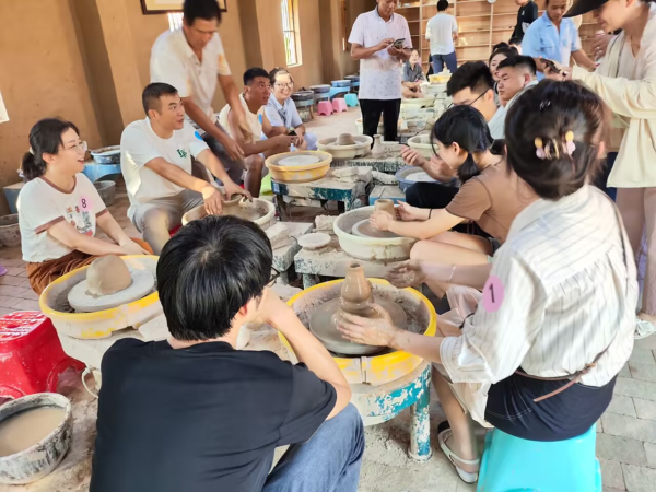 活動中,大家來到痘姆古陶研學(xué)基地,在參觀中了解了古陶歷史,感受了古陶文化,學(xué)習(xí)了制陶技藝,合作體驗了陶器的制作過程,在輕松的氛圍中進一步拉近了距離,相互成為了微信好友,活動也達到了預(yù)期效果。