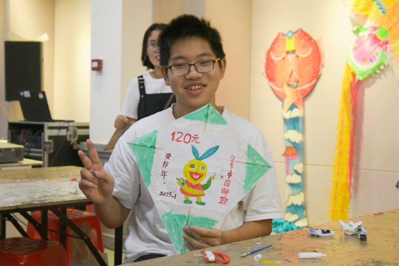 隨后,孩子們迫不及待地開始動手制作屬于自已的風箏,他們不僅在風箏上繪制了美麗的圖案,還巧妙地將風箏文化和郵票文化相融合,用彩筆勾勒出十二生肖等郵票元素,獨具特色與新鮮感。