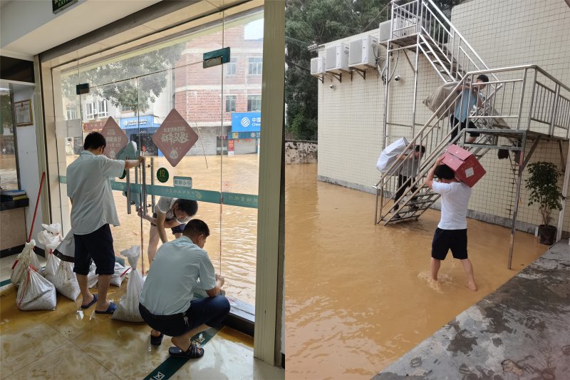 據(jù)統(tǒng)計(jì),本次水浸受災(zāi)的支局有羅定分公司泗淪、船步、太平、加益、連州、新榕支局和郁南縣分公司大灣支局。風(fēng)雨中,員工們卷起褲腳、抱起郵件,一步一步地淌著水向高處轉(zhuǎn)移郵件和重要設(shè)施;沙包加固營業(yè)廳大門、封口膠封住玻璃門縫隙……員工們齊心協(xié)力不讓路面的水進(jìn)一步倒灌進(jìn)營業(yè)廳,之后便開始清理積水,用掃帚掃、用簸箕裝,用鐵鍬鏟,運(yùn)用能找到的各種工具,把積水和黃泥全部清除,換回了整潔的營業(yè)廳和后花園。