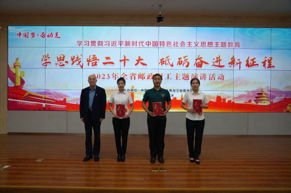 2023年9月26日,為學(xué)習(xí)宣傳貫徹黨的二十大精神,迎接中國(guó)工會(huì)十八大的召開(kāi),黑龍江省郵政工會(huì)在哈爾濱舉辦了2023年全省郵政職工“中國(guó)夢(mèng)·勞動(dòng)美——學(xué)思踐悟二十大 砥礪奮進(jìn)新征程”主題演講比賽活動(dòng)。全省各級(jí)郵政工會(huì)高度重視、精心組織,經(jīng)過(guò)層層選拔,來(lái)自全省郵政14個(gè)代表隊(duì)的26位演講選手參加了黨的二十大知識(shí)現(xiàn)場(chǎng)問(wèn)答,展開(kāi)了激情澎湃的演講角逐。經(jīng)過(guò)評(píng)選,3名職工榮獲一等獎(jiǎng)、5名職工榮獲二等獎(jiǎng)、8名職工榮獲三等獎(jiǎng)、10名職工榮獲優(yōu)秀獎(jiǎng)。省郵政工會(huì)評(píng)選出哈爾濱、牡丹江、大慶、雞西、伊春、大興安嶺地區(qū)、省分公司機(jī)關(guān)工會(huì)7個(gè)郵政工會(huì)為優(yōu)秀組織獎(jiǎng)。同時(shí),省郵政工會(huì)將在“黑龍江郵政”公眾號(hào)上擇優(yōu)展播獲獎(jiǎng)選手演講視頻。