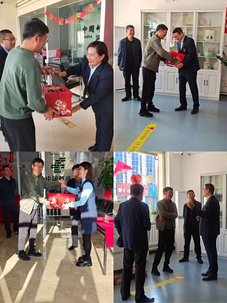 在國慶節(jié)來臨之際,巴彥淖爾市郵政各營業(yè)網(wǎng)點加班加點搶抓有利時機,積極與客戶對接,開展了全方位、多形式的宣傳營銷活動,為讓在崗職工度過一個愉快祥和的節(jié)日,巴彥淖爾市郵政分公司有關(guān)領(lǐng)導(dǎo)、機關(guān)各部室人員以及幫扶干部組成三個慰問組,深入全市各基層網(wǎng)點為節(jié)日期間堅守崗位的職工送去節(jié)日的問候和關(guān)懷,并就金融業(yè)務(wù)營銷及重點任務(wù)完成情況進行督導(dǎo)。