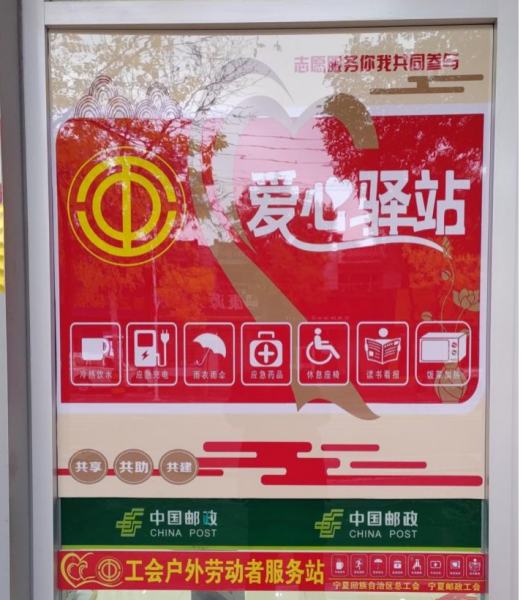 城市的發(fā)展離不開(kāi)勞動(dòng)者的辛勤付出,為扎實(shí)落實(shí)“我為群眾辦實(shí)事”工作。近日,中衛(wèi)郵政工會(huì)結(jié)合工作實(shí)際,對(duì)沙坡頭區(qū)、中寧縣、海原縣臨街靠路、交通方便的網(wǎng)點(diǎn)場(chǎng)所各建造了2處“戶外勞動(dòng)者服務(wù)站點(diǎn)”,全市共建6處,進(jìn)一步解決了環(huán)衛(wèi)工人、快遞小哥、外賣小哥、出租車司機(jī)、交通警察等戶外勞動(dòng)者“吃飯難、喝水難、充電難、休息難、如廁難”等現(xiàn)實(shí)問(wèn)題。