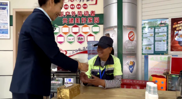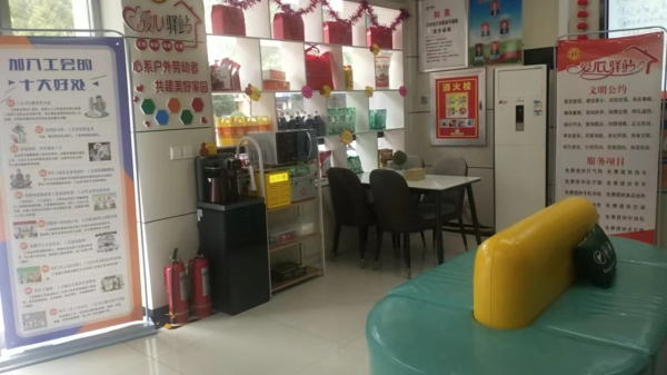 在驛站內(nèi),各營(yíng)業(yè)網(wǎng)點(diǎn)提供了工具箱、雨傘、應(yīng)急藥箱、針線包、書(shū)刊架、抽紙、打氣筒、飲水機(jī)、微波爐、多功能充電器等設(shè)備,為戶外工人提供遮風(fēng)避雨、歇腳休息的場(chǎng)所,確保他們“冷有地方取暖、熱有場(chǎng)所納涼、渴有熱水供應(yīng)、累有站點(diǎn)歇腳”。飲水、熱飯、閱讀、休息、充電等便民服務(wù),讓各網(wǎng)點(diǎn)愛(ài)心驛站成為了戶外工人的“第二個(gè)家”。