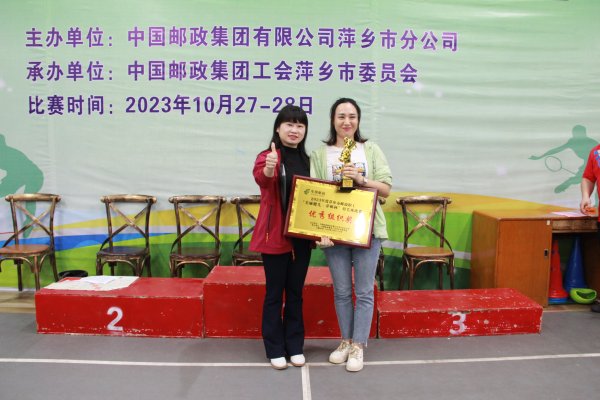 10月28日下午17時(shí)00分,經(jīng)過(guò)2天的激烈比拼,蘆溪分公司代表隊(duì)獲團(tuán)體第一名,市寄遞分會(huì)代表隊(duì)獲團(tuán)體第二名,蓮花縣分公司代表隊(duì)獲團(tuán)體第三名;市寄遞分會(huì)胡振海和蘆溪縣分公司汪婷鈺分別榮獲男子、女子單打比賽一等獎(jiǎng);蓮花縣分公司歐陽(yáng)耀平、安源區(qū)分公司胡亮和蘆溪縣分公司曾金婷、湘東區(qū)分公司鄔閩分別榮獲男子、女子單打比賽二等獎(jiǎng);蘆溪縣分公司歐陽(yáng)衛(wèi)民、市寄遞分會(huì)楊光凱、上栗縣分公司鄧林、張小青,服務(wù)質(zhì)量部劉麗華、工會(huì)黃志紅分別榮獲男子、女子單打比賽三等獎(jiǎng)。