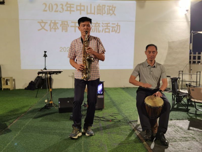 交流活動(dòng)在輕松愉快的互動(dòng)中進(jìn)行,在氛圍感拉滿的露天天臺(tái),老師以一首《星晴》開(kāi)場(chǎng),點(diǎn)燃了彼此美好的心情。接著,文體骨干們輪番上臺(tái)自由發(fā)揮,有手鼓和薩克斯聯(lián)合演奏,有對(duì)唱、輪唱、獨(dú)唱,美聲、民族、通俗等各種唱法層出不窮,耳熟能詳?shù)牡男尚煨祉懫?,美妙?dòng)人的歌聲不絕于耳,整個(gè)會(huì)場(chǎng)氣氛熱烈,充滿了歡聲笑語(yǔ),洋溢著青春活力。中山市分公司副總經(jīng)理余怒放、副總經(jīng)理兼工會(huì)主席謝名亮的合唱《明天會(huì)更好》,更是將活動(dòng)氛圍推向了高潮。