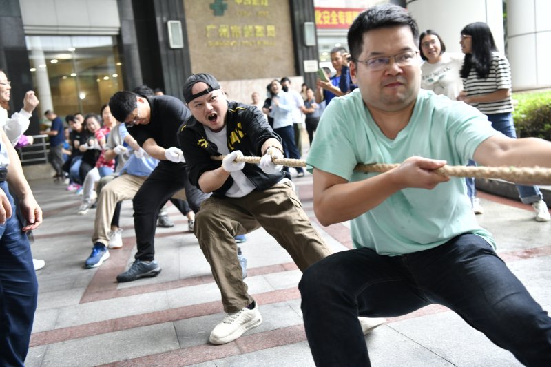 廣州市分公司職能部室開展了第二屆“奮斗·活力”杯拔河比賽。比賽開始前,4支部室聯(lián)隊的60名隊員伍蓄勢待發(fā),現(xiàn)場氣氛緊張而熱烈。隨著裁判員一聲令下,選手們傾盡全力,使出渾身解數(shù),繩子中間的紅布不斷地在兩隊之間移動。現(xiàn)場吶喊聲、歡呼聲此起披伏,不僅上演了一場力量的較量,更展示了郵政員工團結(jié)奮進、全力以赴、永不放棄的精神風(fēng)貌。