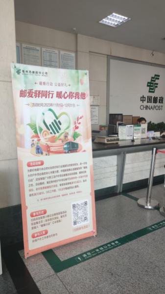 按照集團(tuán)工會(huì)關(guān)于開展“溫暖服務(wù)季”活動(dòng)安排,為進(jìn)一步加大對(duì)戶外勞動(dòng)者的關(guān)心關(guān)愛力度,亳州市郵政工會(huì)提前謀劃,精心安排,在做好驛站提升服務(wù)的同時(shí),制作了30個(gè)“溫暖服務(wù)季”宣傳展架,分別布放到縣、區(qū)網(wǎng)點(diǎn)驛站,通過工作人員推介宣傳,幫助廣大職工及戶外勞動(dòng)解除后顧之憂。