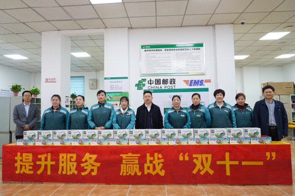 11月10日上午,駐馬店市分公司黨委書記、總經(jīng)理申瑞華,黨委委員、副總經(jīng)理、工會主席王開鋒,工會副主席李杰一行到驛城區(qū)郵政分公司攬投三部和市郵件處理中心。給奮戰(zhàn)在“雙11”一線的郵政攬投員、分轉(zhuǎn)員和郵運(yùn)司機(jī)們送去牛奶、方便面、火腿腸等慰問品,為奮戰(zhàn)在一線的基層員工加油鼓勁。
