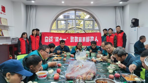 投入資金近5萬元,持續(xù)開展“送暖心飯到一線”活動(dòng),為條件艱苦和業(yè)務(wù)量大的24個(gè)攬投部的一線職工在中午或晚上送去熱菜熱飯,為他們加油、鼓勁,助力打贏“雙11”高峰戰(zhàn)役。 (北京郵政工會(huì))