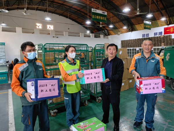 為及時(shí)將市公司黨委的關(guān)心關(guān)懷送到奮戰(zhàn)在網(wǎng)點(diǎn)現(xiàn)場(chǎng)的廣大投遞員,昆明郵政工會(huì)結(jié)合“溫暖服務(wù)季”活動(dòng)要求, 對(duì)全市各基層工會(huì)“雙十一”慰問(wèn)工作進(jìn)行了周密布置和安 排,同時(shí)要求各工會(huì)小家發(fā)揮作用,保障“雙十一”期間投遞員的吃飯休息,各專(zhuān)業(yè)部門(mén),縣市區(qū)分公由主要領(lǐng)導(dǎo)帶隊(duì),深入生產(chǎn)一線進(jìn)行慰問(wèn)解決實(shí)際問(wèn)題,鼓勵(lì)生產(chǎn)一線職工,攻堅(jiān)克難,圓滿完成好“雙十一”各項(xiàng)工作任務(wù)。
