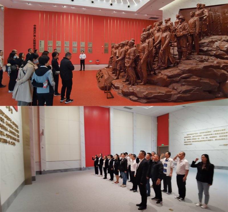 開闊的宣示廳莊嚴肅穆,墻板上的入黨誓詞映入眼簾。此行的最后,大家快步走到宣誓廳,所有的黨員干部就位,舉起右拳重溫入黨誓詞。80個字擲地有聲,錚錚誓言訴說著對黨忠誠、敬業(yè)奉獻的承諾。