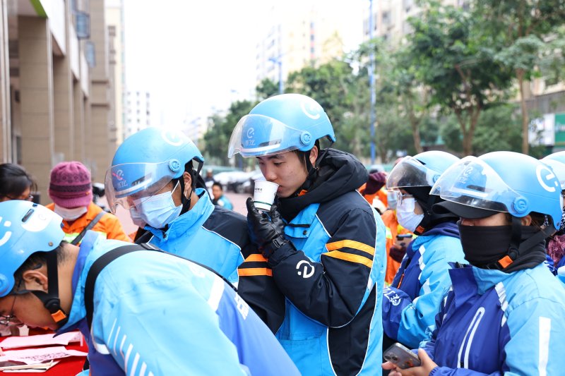 當(dāng)天,工作人員在茂名市金城路營(yíng)業(yè)所郵愛驛站門前進(jìn)行熱飲派發(fā),用姜茶為新業(yè)態(tài)勞動(dòng)者們驅(qū)寒意、暖身心,出席現(xiàn)場(chǎng)的領(lǐng)導(dǎo)嘉賓和快遞員、環(huán)衛(wèi)工人、外賣員、送貨員等120多位新業(yè)態(tài)勞動(dòng)者代表一起感受著這一份暖心的活動(dòng)氛圍。