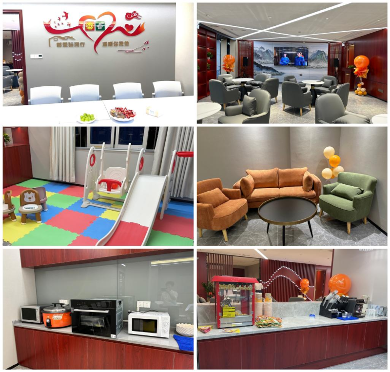 此外,漠江、東城財富中心電視、冰箱、微波爐、電飯鍋、消毒柜、咖啡機、制冰機、破壁機、兒童滑梯、沙發(fā)休閑椅等設(shè)施設(shè)備一應(yīng)俱全,在這里,不僅可以讓員工用餐休憩、開會學(xué)習(xí),讓工會小組開展烘培聯(lián)誼、親子活動,更可以邀請客戶洽談商務(wù)、品茶會友……