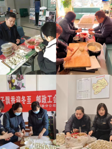冬至暖意濃,共話郵政情。12月22日,是24節(jié)氣中的冬至,為讓奮戰(zhàn)在一線的員工能吃上熱乎乎的餃子,平頂山市郵政工會組織各分公司工會開展了冬至送溫暖活動。一是組織各單位機關(guān)全體包聯(lián)人員,帶著職工食堂事先準(zhǔn)備好的餃子餡、餃子皮,分赴支局,現(xiàn)場為奮戰(zhàn)在旺季生產(chǎn)一線的員工包餃子。二是組織郵件處理中心攬投員、分揀員在職工食堂包餃子。雖然每個人包餃子的熟練程度和手法各不相同,但奉獻愛心、助力旺季發(fā)展的行動是一致的。中午時分,一線員工圍坐在一起,吃著熱乎乎的餃子,心里暖意融融。他們感受到了郵政大家庭溫暖,紛紛表示,將不負(fù)期望,在金融、寄遞跨年營銷戰(zhàn)役中,克難攻堅,勇爭一流,圓滿完成各項目標(biāo)計劃,奪取首季開門紅?。ê幽鲜∴]政工會)