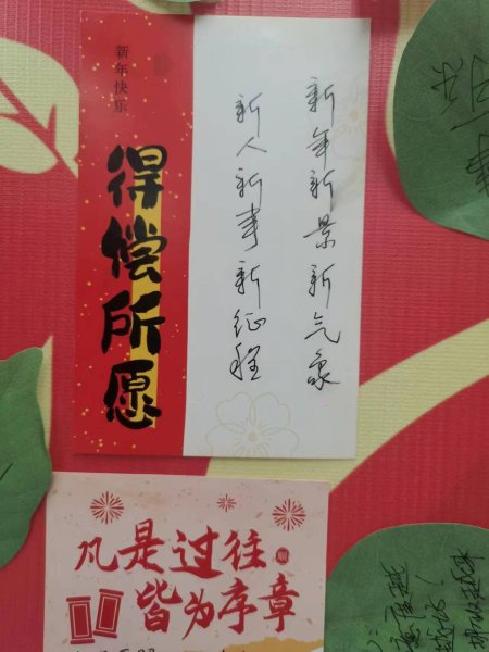 “越努力,越幸運”“努力工作,推動貴州郵政高質量發(fā)展”“元氣滿滿,保持熱愛”“辭暮爾爾,煙火年年”......祝福墻上,掛滿了300多名職工書寫的祝福卡,樹葉型、菱形、正方形、長方形等各種形狀的賀詞卡片,五顏六色,逗人喜愛,把祝福墻裝扮得郁郁蔥蔥,象征著來年蓬勃發(fā)展。