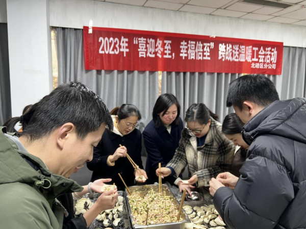 冬至當日,北碚郵政領(lǐng)導(dǎo)班子及機關(guān)支撐人員紛紛前往各職工食堂、職工小家,與員工們一起包餃子、烹飪暖暖的羊肉湯,將濃濃的暖意送到員工手上,營造了北碚郵政“一家親”的溫馨氛圍。