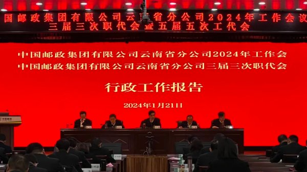 1月21日,中國郵政集團(tuán)有限公司云南省分公司2024年工作會(huì)議、三屆三次職代會(huì)暨五屆五次工代會(huì)在昆明召開,省分公司黨委書記、總經(jīng)理嚴(yán)明,省分公司黨委委員、副總經(jīng)理、工會(huì)主席李強(qiáng),省分公司黨委委員、紀(jì)委書記袁旭東,省分公司黨委委員、副總經(jīng)理龐博,省分公司黨委委員、副總經(jīng)理彭宇出席會(huì)議。