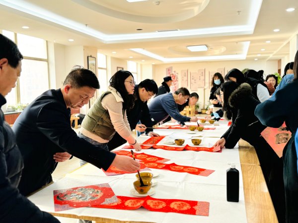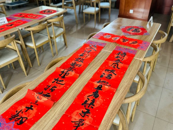 1月30日,機關工會舉辦了“新春贈春聯(lián)活動”。職工柳晴、張輝昌、王小軍、魏宗林老師在機關食堂書寫春聯(lián),為此,機關工會提前準備了空白的對聯(lián)紙和對聯(lián)內(nèi)容,職工可以自選、也可以向幾位老師提要求讓他們根據(jù)要求寫出內(nèi)容、還可以自已現(xiàn)場現(xiàn)編創(chuàng)意春聯(lián)要求書寫,吸引了許多職工參與,書寫活動從午后一直持續(xù)到下班后,現(xiàn)場擺滿了紅色對聯(lián)和福字熱鬧非凡,年味十足,此次活動也為即將到來的龍年新春拉開了序幕。