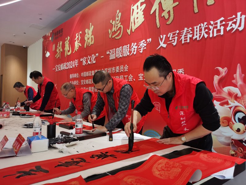 為落實(shí)溫暖服務(wù)季活動(dòng)精神,1月25日-2月4日,由深圳市郵政工會(huì)牽頭,各基層工會(huì)承辦的“郵龍獻(xiàn)瑞?鴻雁傳情”義寫春聯(lián)活動(dòng)順利開展。