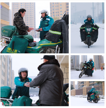 界首市郵政工會為進(jìn)一步增強(qiáng)員工的歸屬感和幸福感,勾畫出員工勞動的美麗瞬間,開展了為期一個月的“尋找最可愛的人”系列活動。2月4日的主題為“風(fēng)雪郵政人”。寒潮來襲,界首郵政人不懼風(fēng)雪,全力做好黨報黨刊和郵件投遞工作,用堅守和奉獻(xiàn)詮釋“人民郵政為人民”的初心使命,用實際行動詮釋自強(qiáng)不息的企業(yè)文化精神,讓郵政綠成為一道靚麗的風(fēng)景。