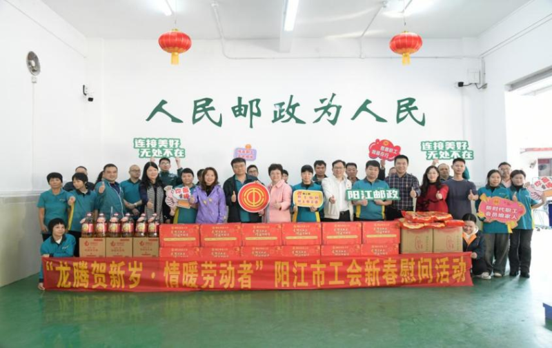 2月2日,陽江市總工會慰問組到陽江分公司郵政寄遞攬投部開展2024年春節(jié)送溫暖活動,為郵政一線攬投員送上火鍋料理機、花生油、大米等節(jié)日慰問品,傳遞黨和政府、工會組織的關(guān)懷和問候。