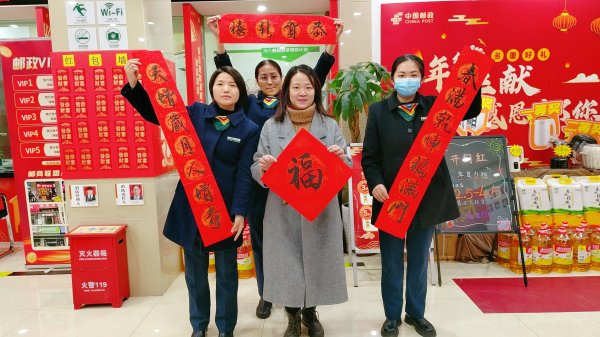 同時(shí)聯(lián)合社區(qū),對(duì)廣大社區(qū)居民免費(fèi)贈(zèng)送郵政印制的春聯(lián)福字,將郵政祝福帶回家。截至2月18日,共計(jì)組織開展“送萬福、進(jìn)萬家”公益活動(dòng)8場(chǎng),覆蓋網(wǎng)點(diǎn)周邊居民客戶累計(jì)約500人,得到員工和社區(qū)居民高度認(rèn)可和一致好評(píng)。