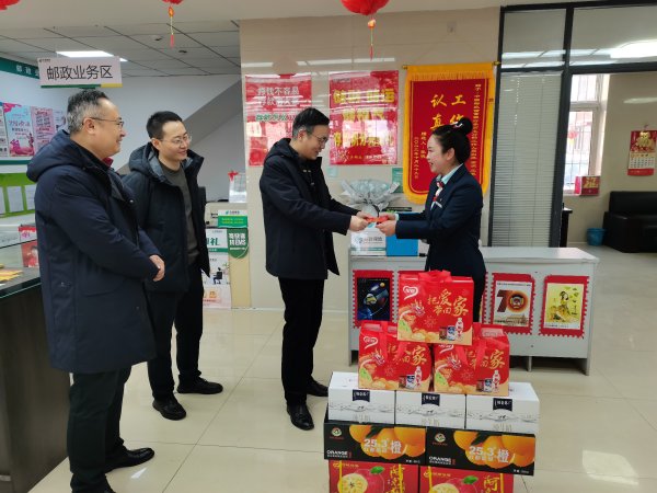 2月1日,省分公司紀(jì)委書記、副總經(jīng)理胡紅軍一行來到撫順市分公司,實地走訪慰問郵件處理中心、撫順城支局、李石支局和新?lián)釘埻恫?,為一線員工送去關(guān)心和祝福。胡紅軍向一線的員工們的辛勤付出表示敬佩和感謝,囑咐大家在關(guān)注旺季生產(chǎn)的同時保重身體,注意防寒保暖,并向大家致以節(jié)日的問候。