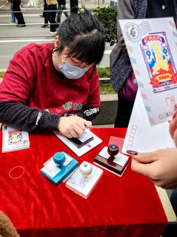 此外,紅色大郵筒、郵大龍打卡拍照牌、郵政紀念戳等成為今年廣州花市的一大吸睛亮點,吸引了眾多市民邀請親朋好友前往打卡。