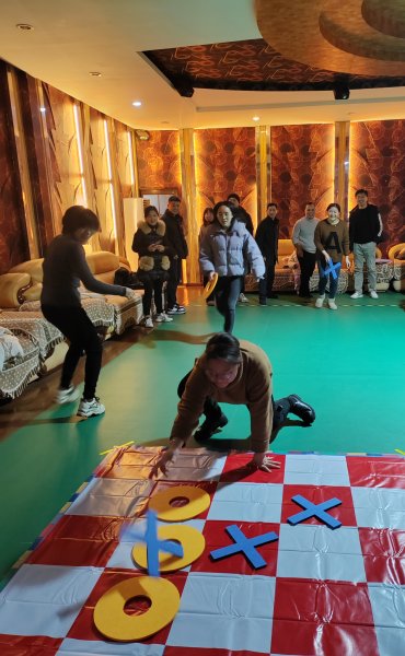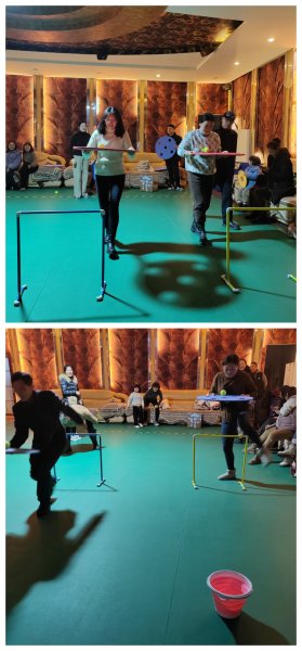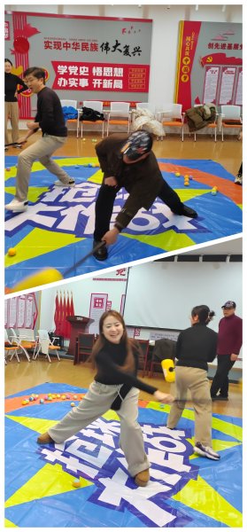 本次活動(dòng)項(xiàng)目有搶球大作戰(zhàn)、四平八穩(wěn)和歡樂五子棋,三項(xiàng)活動(dòng)均以團(tuán)隊(duì)協(xié)作為主。一開始,大家都聚集在搶球大作戰(zhàn)的場地,找人一起搭檔玩,這個(gè)游戲分為兩組隊(duì)伍(搶球方和防守方),搶球方3名代表參加,防守方2名代表參加作戰(zhàn)。搶球方在搶球的過程中被防守方用氣錘擊中,搶到的球被視為無效。游戲開始,搶球的三個(gè)人配合默契,其中兩人負(fù)責(zé)去吸引火力,另一人拼命搶球。一輪結(jié)束后,換搶球方的2人防守,防守方的3人來搶球,最終,搶到球最多的隊(duì)伍獲勝。