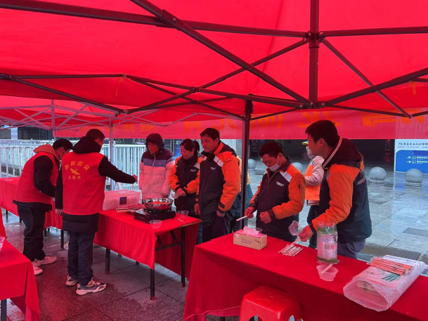 元宵到,喜氣罩,吃碗元宵好運繞。一碗碗剛出鍋、熱氣騰騰的元宵,讓人頭攢動的郵愛驛站里洋溢著濃濃的節(jié)味。2月24日上午,衡陽市郵政工會積極響應市總工會號召,在3個郵愛驛站開展“騰龍鬧元宵·驛站暖人心”活動,為驛站周邊的環(huán)衛(wèi)工人、城管人員、快遞小哥等戶外工作者送上一份節(jié)日的關懷和祝福。