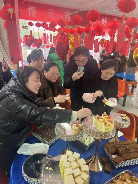 現(xiàn)場氣氛火熱,一排排紅色的燈籠和飄揚(yáng)的氣球?qū)⒒顒?dòng)現(xiàn)場襯托得喜慶祥和,200多條燈謎懸掛在燈籠下,吸引100多名前來猜燈謎的員工?;顒?dòng)現(xiàn)場還擺放了精美的甜品臺(tái),大家邊品嘗可口的蛋糕邊猜燈謎,現(xiàn)場歡聲笑語、熱鬧非凡。