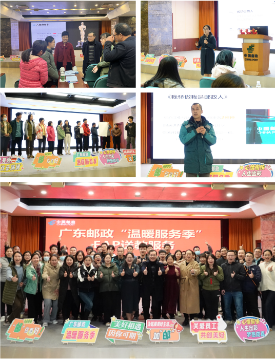 為深入貫徹落實黨的二十大和中國工會十八大精神,關(guān)心關(guān)愛員工的心理訴求和心理健康,結(jié)合廣東省郵政工會“溫暖服務(wù)季”送教活動的開展,揭陽、廣州市分公司落地舉辦了主題為“說積極的話,干有意義的工作”心理賦能關(guān)愛培訓(xùn)。兩個地市分公司共有工會干事、金融網(wǎng)點負(fù)責(zé)人、理財經(jīng)理、寄遞業(yè)務(wù)等170余名營銷人員參加培訓(xùn)。