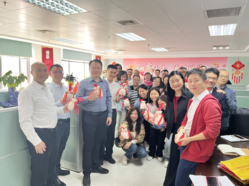 正月初九,開(kāi)工大吉!中山市分公司全體員工蓄勢(shì)待發(fā),奔赴各自崗位,吹響新年奮進(jìn)號(hào)角。當(dāng)天上午,中山市分公司領(lǐng)導(dǎo)班子成員逐一到各部門拜年,給每位員工送上福袋,福袋里裝滿了糖果,祝福大家在新的一年工作收獲滿滿、生活甜甜蜜蜜。