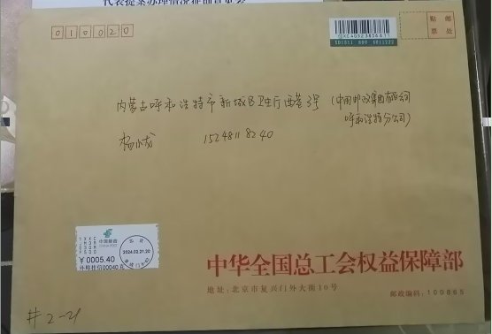 “我剛收到提案承辦單位中華全國總工會權益保障部的答復函,對我的提案給了很詳細的回應。”近日,中華全國總工會十八大代表、中國郵政集團有限公司呼和浩特市分公司騰飛營業(yè)部快遞員楊小龍在內蒙古自治區(qū)國防郵電工會第二屆委員會暨女職工委員會第三次全體會議上說。
