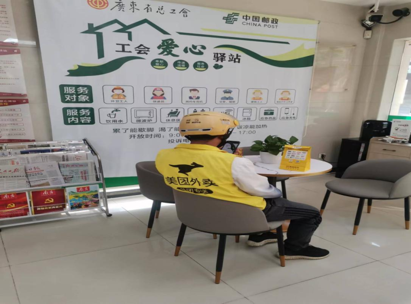 為忠實(shí)履行郵政普遍服務(wù)社會(huì)的職能,秉承“人民郵政為人民”的宗旨,廣東省郵政工會(huì)整合各方資源,把提質(zhì)和擴(kuò)面有機(jī)結(jié)合,推動(dòng)驛站建設(shè)標(biāo)準(zhǔn)再提高、站內(nèi)設(shè)備再升級(jí)、運(yùn)營管理再提質(zhì)、服務(wù)水平再提升、業(yè)務(wù)發(fā)展再融合,傾力打造了351個(gè)讓戶外勞動(dòng)者冷可取暖、熱可納涼、渴可喝水、累可歇腳的溫馨工會(huì)驛站。