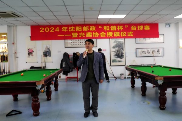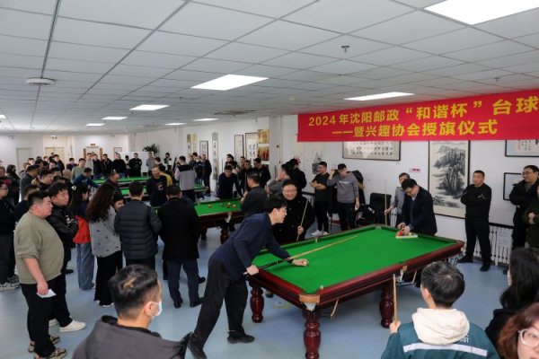 三月二十日中午,沈陽郵政工會(huì)在職工活動(dòng)中心舉行“和諧杯”臺(tái)球賽暨職工興趣協(xié)會(huì)成立授旗儀式。來自二十個(gè)單位的一百余名選手和十五個(gè)興趣協(xié)會(huì)會(huì)長及會(huì)員參加活動(dòng)。