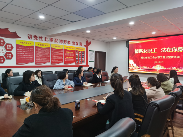 3月29日,秀山郵政工會(huì)開(kāi)展“情系女職工 法在你身邊”普法宣傳活動(dòng)。參加本次活動(dòng)的有機(jī)關(guān)女職工,網(wǎng)點(diǎn)支局長(zhǎng)、理財(cái)經(jīng)理及部分女職工,秀山縣總工會(huì)老師作為特邀嘉賓參加本次活動(dòng)。