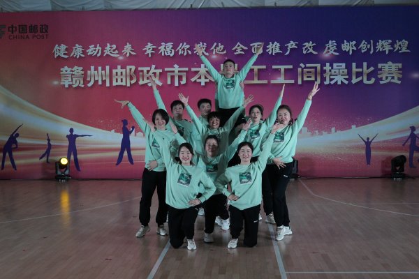 比賽當(dāng)天,陽光明媚,微風(fēng)拂面。各參賽隊伍精神飽滿、斗志昂揚,身著統(tǒng)一服裝,精神抖擻地步入賽場。賽場上,各參賽隊以新穎的創(chuàng)意、獨特的編排、飽滿的熱情、整齊的動作,充分展示了贛州郵政員工別具一格的創(chuàng)新精神,朝氣蓬勃的生命力,良好的身體素質(zhì)和積極向上、努力拼搏的精神風(fēng)貌。觀眾席上掌聲和歡呼聲此起彼伏,現(xiàn)場氛圍熱鬧非凡。經(jīng)過緊張激烈的角逐,來自經(jīng)營支撐工會的“共創(chuàng)輝煌隊”獲得了第一名。