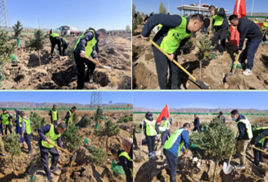 在植樹現(xiàn)場,職工們在專業(yè)人員的指導(dǎo)下,干勁十足地投入到植樹中去,現(xiàn)場氣氛熱烈,活動有序進行,大家彼此默契,相互配合,揮鍬培土、扶苗正苗、踩土圍堰、提水澆灌一氣呵成,雖然風(fēng)大降溫,但現(xiàn)場仍然呈現(xiàn)出一派熱火朝天、生機勃勃的景象。經(jīng)過大家的共同努力,一株株新栽種的樹苗排列整齊,迎風(fēng)挺立,煥發(fā)出無限生機與活力,為青城春日再添新的綠意。