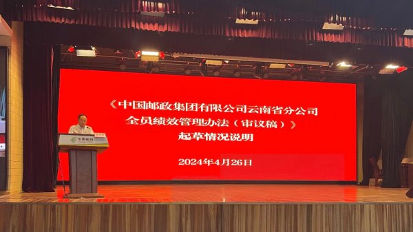 4月26日,中國郵政集團有限公司云南省分公司三屆四次職工代表大會在昆明召開,會議的主要任務是審議表決《中國郵政集團有限公司云南省分公司全員績效管理辦法(審議稿)》(以下簡稱《辦法》)。