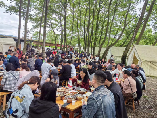 其余參與人員可自行在營(yíng)地中溯溪、打卡拍照紀(jì)念、采摘新鮮竹筍、在乒乓球臺(tái)展開競(jìng)技……呼吸山間清新空氣,現(xiàn)場(chǎng)氣氛其樂融融,每個(gè)人臉上都洋溢著快樂的微笑。